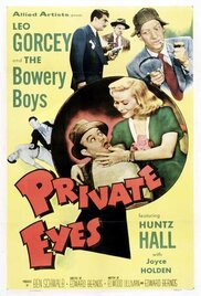 ![]() | Private Eyes (1953) (DVDRip) When Sach is hit on the nose by Herbie, Sach develops a mystic-mind power. This prompts Slip, Chuck, Butch and Louie to buy the Eagle Eye Detective Ag ...<more>